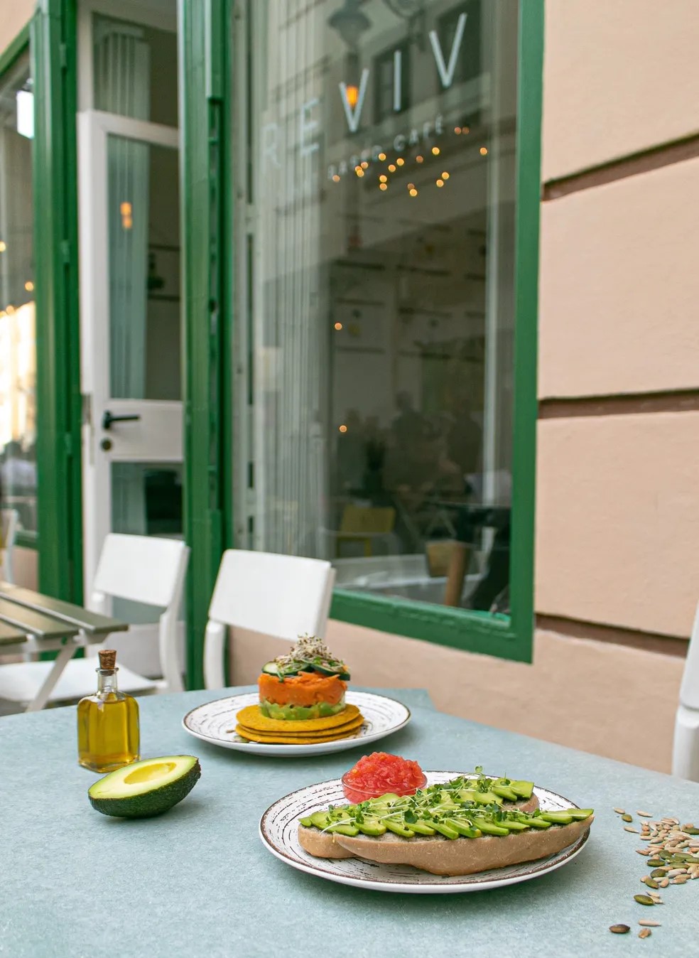 Cafetería Reviv situada en el centro histórico de Málaga ofrece todo sin gluten y vegano. Ofrecemos desayunos, brunch, almuerzo, merienda de comida sana preparada por nosotros a base de plantas. Somos un establecimiento consciente a la salud tanto del planeta como de nuestros cuerpos. Zumos y batidos nutritivos hechos en el momento sin aditivos. De comida tenemos - tostadas, smoothie bowls, panqueques dulce y salado, hamburguesas veganas, albóndigas veganas - deliciosos y hechos de productos frescos. Las tartas - nuestra especialidad – únicas en Málaga sin gluten, crudas, veganas, sin azúcar – también se pueden encargar para celebraciones. Estamos aquí para ofrecer comida para todos y enseñar que comer sano, sin preocupación puede ser también nutritivo, delicioso y fácil!